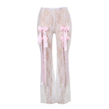 Bandage High Waist Lace Perspective Bow Pants For Women 2024 Spring New Spicy Ladies