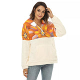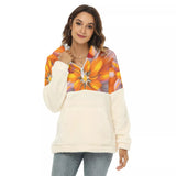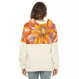 Orange Pazel Women's Block Borg Hoodie With Half Zip