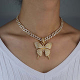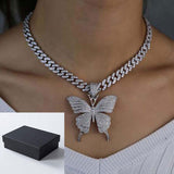 Pink Clear Crystal Butterfly Pendant Charm Miami Curb Cuban Chain Hip Hop Necklace Rapper Gift Rock for Men Women Jewelry