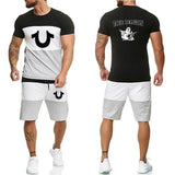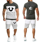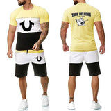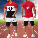 Religion Print Summer Suits Short Sleeve T-shirt and Shorts Suit Casual Striped Streetwear