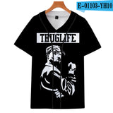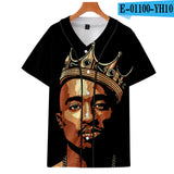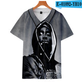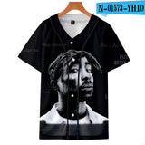 Tupac 2pac T-shirt Short sleeve O-Neck Baseball shirt Hip Hop Swag
