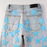 Mens Slim Fit Fashion Amiri Stars Logo Skinny Stretch Jean's
