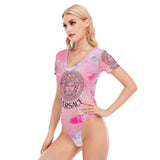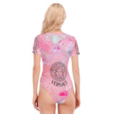 Pink Spectacular Versace Women's V-neck Bodysuit With Short Sleeve