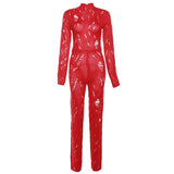 Ice Spice Red Ripped Jumpsuit Women Autumn Behind Shirring Skinny Fashion Activity Sexy Hipster Stretch Streetwear Overalls