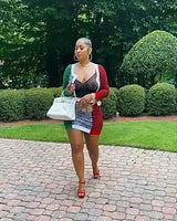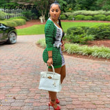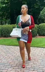Fall women letter print knit dress to impress two piece set long sleeve breasted single cardigan top mini skirt.