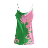 Pink Print Satin Sling Mini Dress Summer Casual Female