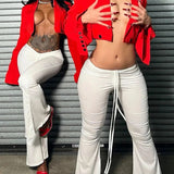 Front And Back Draw String Lace Up Low Waist Sexy Wide Legs Flared Women's Trousers