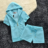 Velvet Tracksuit Juicy 2 Piece Set: Female summer sportswear