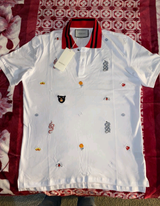 This Fancy Gucci New Design Polo Shirt boasts a cute design that is sure to catch the eye. Made with high-quality materials and expert craftsmanship, it offers both style and durability. Add a touch of luxury to your wardrobe with this unique and fashionable polo shirt.