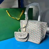 This 2025 Goyard Mini Tote Bag is a luxury designer piece that exudes elegance and sophistication. Made with the finest materials and craftsmanship, it is a timeless accessory that will elevate any outfit. Own this designer tote and make a statement wherever you go.