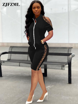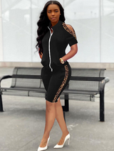 Zweiteiliger Leoparden-Trainingsanzug mit kurzen Ärmeln