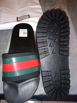 Bringen Sie Ihren Stil mit diesen Gucci Herren-Designer-Gummi-Sandalen auf eine Stufe. Ihr hübsches Design wird Sie in jeder Menge hervorheben. Setzen Sie ein mutiges Statement und verleihen Sie jedem Outfit einen Designer-Touch. Bequem schick und absolut stylisch.