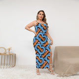 Women's Oblique-Shoulder Exposure Dress With Side Split (Plus Size) Burberry Print Pattern