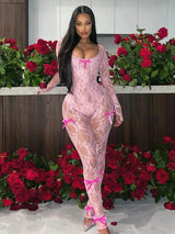 Sexy See Through Jumpsuit Lace Women Summer Fashion Coquette