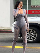 Elevate your summer style with our Sexy See Through Jumpsuit! Its lace design and low-neck cut will turn heads at any club or workout session. Stay comfortable and confident with the elastic material and skinny fit. Embrace your inner coquette with this must-have fashion piece!