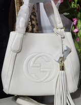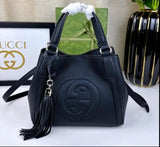 Indulge in luxury with the small Soho Shoulder Bag from Gucci. Crafted from premium leather, this elegant bag features the iconic Gucci logo, making it a statement piece. With its spacious interior and stylish design, this bag is perfect for everyday use or a night out on the town. Elevate your fashion game with the Soho Shoulder Bag.