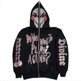 Stay swagged up in the Y2K Billy The Saw Puppet Street Hoodie! You'll turn heads with the rhinestone detailing that will have you shining like a star. Look hip while feeling comfy and cozy in this unique hoodie! Live it up like it's the last day of 1999! 😉