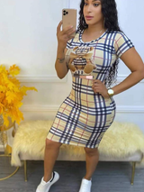 Summer Fashion T-shirt Casual Dress Burberry Plaid