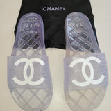 Relax in style with the Chanel Luxury Brand Beach Slides. Featuring a cute and stylish design, these slides will be your new favorite accessory for effortless beach days. Hit the shore with confidence, knowing you’re wearing an iconic luxury brand. Look and feel your best with Chanel!