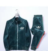 Stay ahead of the game with this daring, high end luxury track suit. Featuring designer brands Gucci and Adidas, show off your style with a look that is sure to turn heads. Step up your fashion game and add some flair to your wardrobe with this truly fabulous piece.